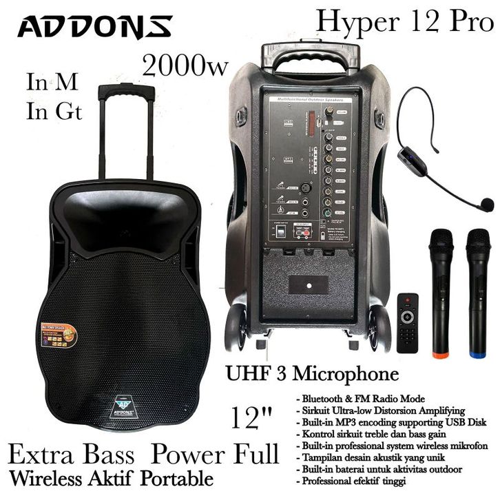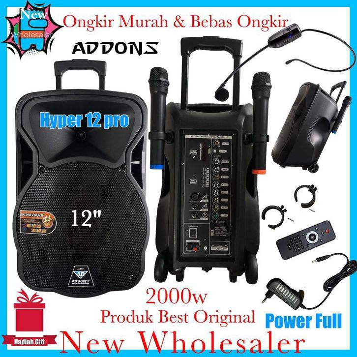 Speaker 12 inch Aktif Portable Wireless 3 mic Addons Original Hyper 12 Pro