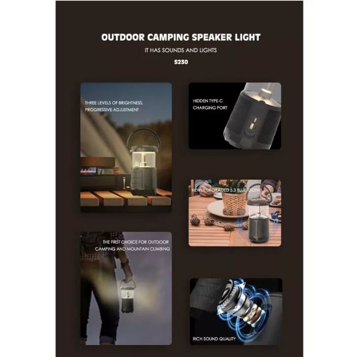 Speaker Bluetooth Terbaru LENYES Mini Speaker 15W + Outdoor Lamp Portable Bluetooth TWS 5.3 Speaker Lampu Tidur S230