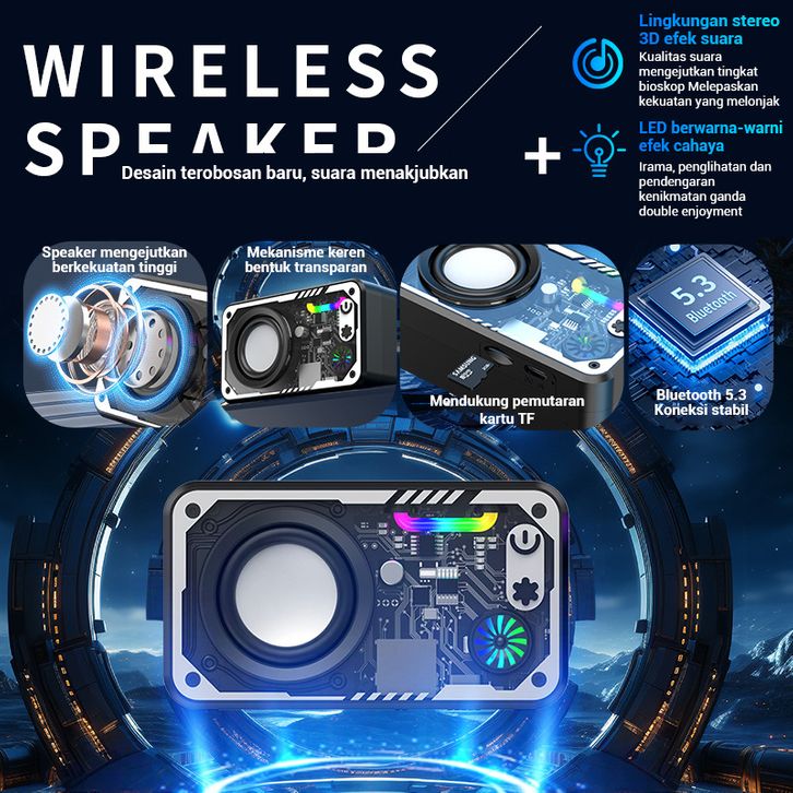 Speaker Bluetooth Terbaru Speaker mini subwoofer kartu SD nirkabel volume tinggi meriam baja kecil mecha audio transpara