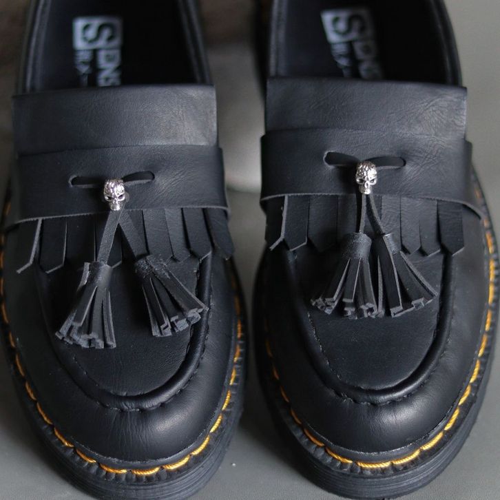 Sepatu Loafers Pria Formal Slip On Hitam Dogmart Pantofel Kerja Kulit PU Penny Loafers Sintetic Premium Enoz Sins Skull
