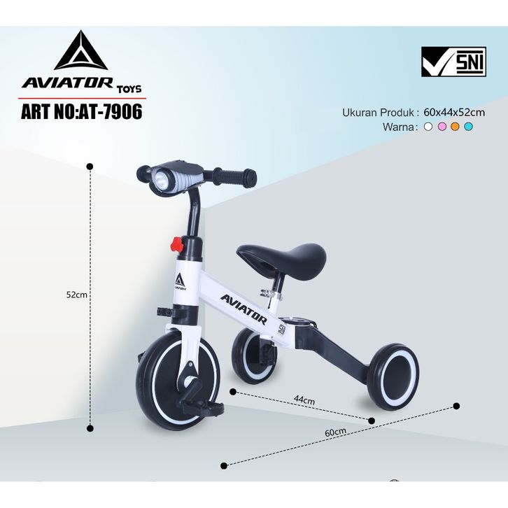 Promo Balance Bike Aviator 7905 - 7906 PMB IORA T.20-7 3 in 1 Sepeda Roda Ta Pushbike New