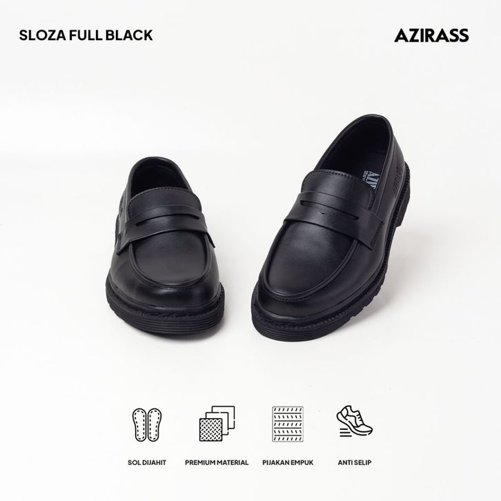 Azirass - Sloza Full Black Sepatu Loafer Slip On Pria Kulit Hitam Formal dan Casual Kerja Kondangan