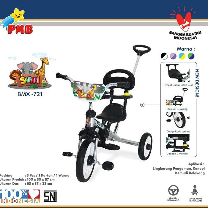 Promo PMB 721 Sepeda BMX Roda Ta Anak Tricycle Sandaran Stenlis Nikel Dorongan Jagaan PMB 721 New