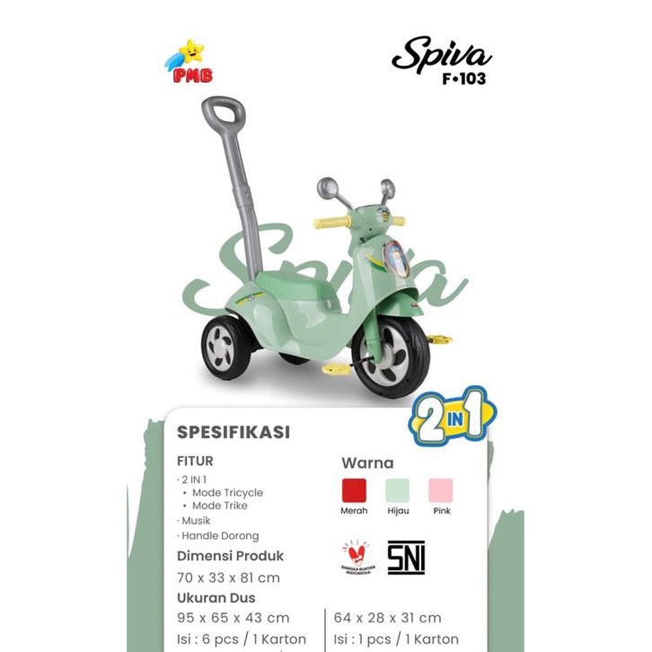 Promo Sepeda Roda Ta Anak Dorong Motor Motoran Mainan Anak PMB SPIVA F103 F-103 Ride On Toys