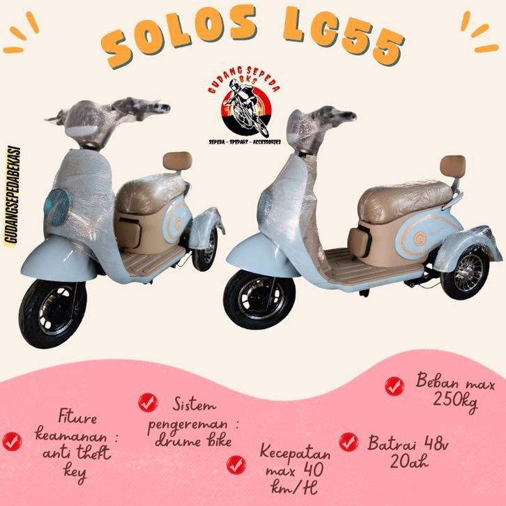 SEPEDA LISTRIK RODA 3 SOLOS L-G55 / L-G66 TERLARISS !!!