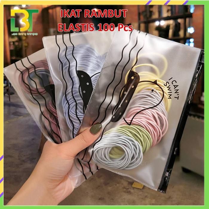 LBT Ikat rambut Karet Rambut Elastis Warna Polos 2 warna 100Pcs - HC2430 HITAM