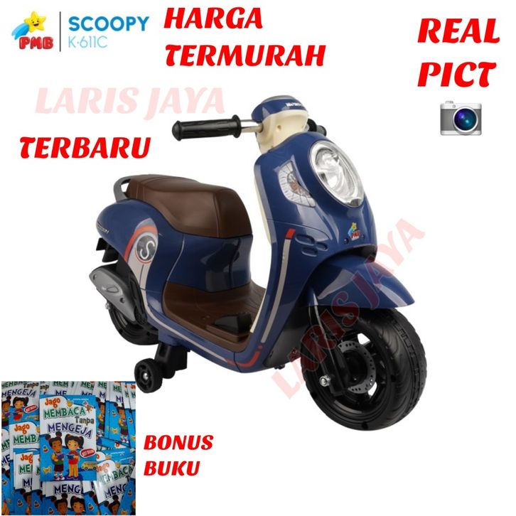 BONUS BUKU Mainan Motor Aki Anak PMB K611C Honda Scoopy Official Licensed by Honda , MOTOR MAINAN