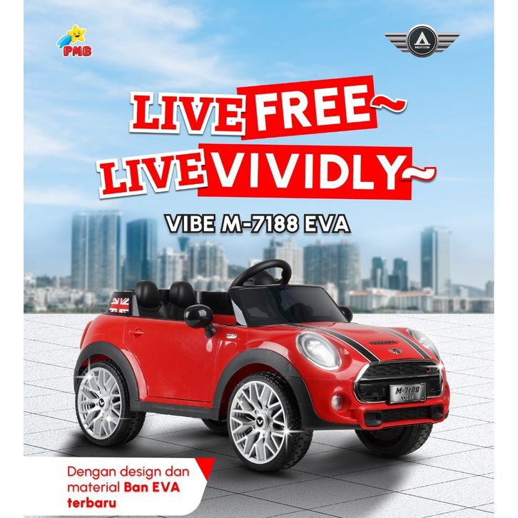 Mainan Anak Mobilan Aki Remote Control Mini Cooper Vibe PMB M 7188 Ban Karet EVA Mortein M7188EVA