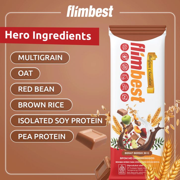 FLIMBEST MEAL REPLACEMENT Cokelat Susu 1 Box 12 Sachet Susu DIet Solusi Langsing Sehat Alami Susu