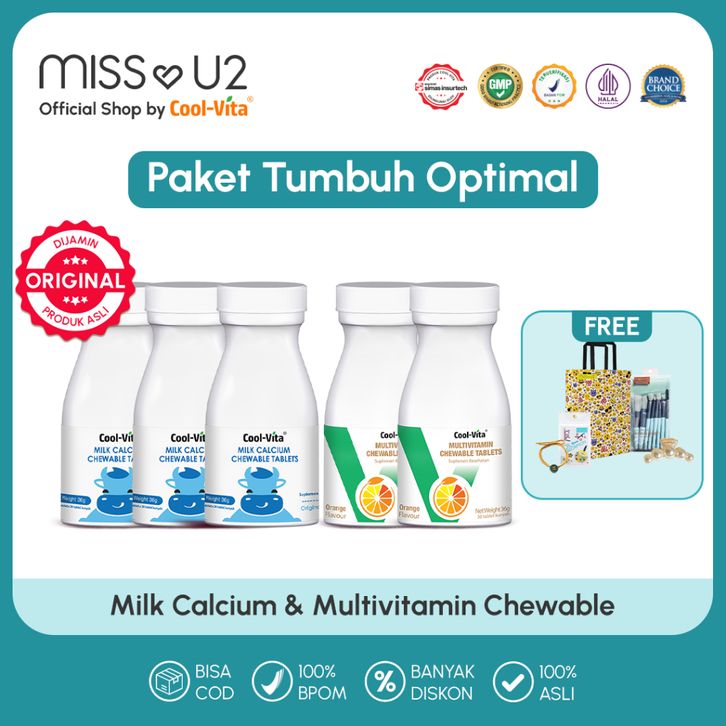 COOLVITA ORINAL PAKET TUMBUH OPTIMAL Taet Kunyah 3 Botol Milk Calcium + 2 Botol Multivitamin Chewae