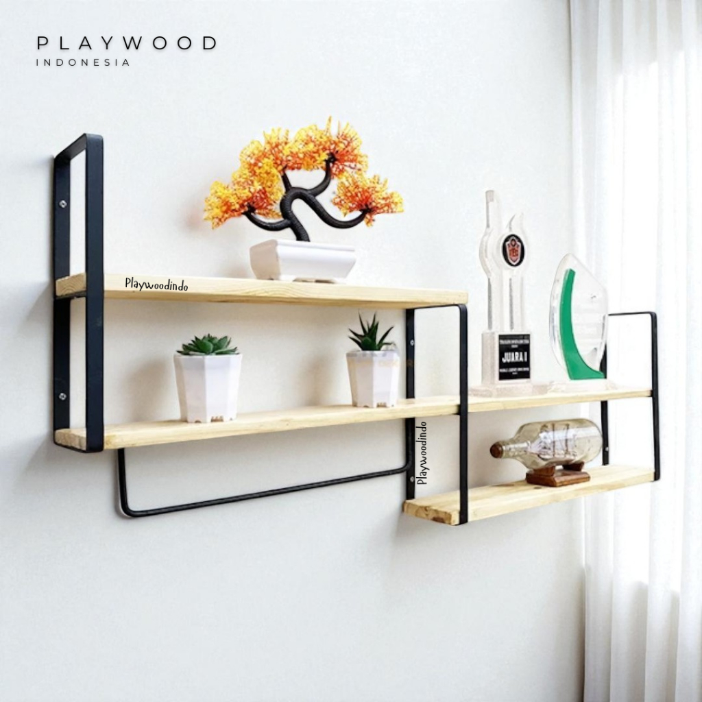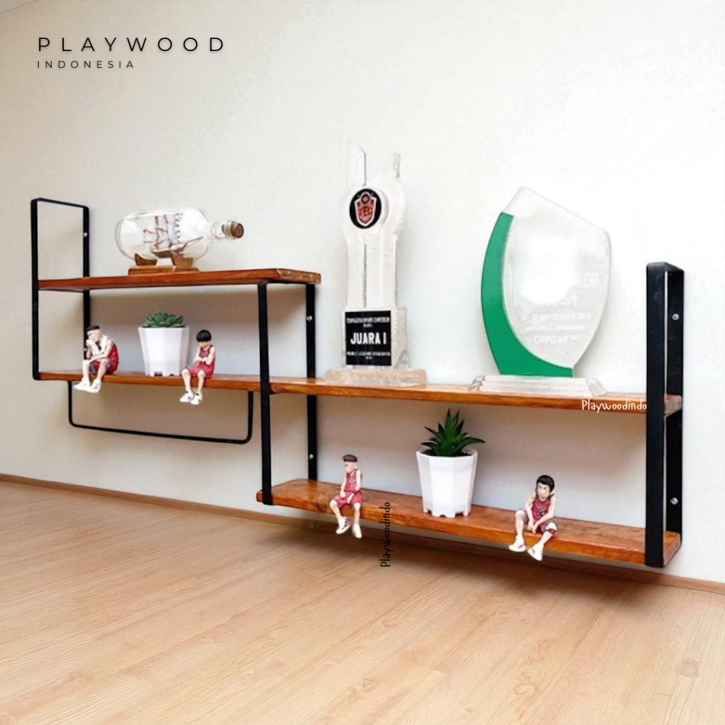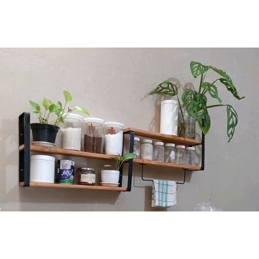 KICHEN SET MINIMALIS RAK DINDING TRIPLE MATERIAL BESI DAN KAYU ASLI