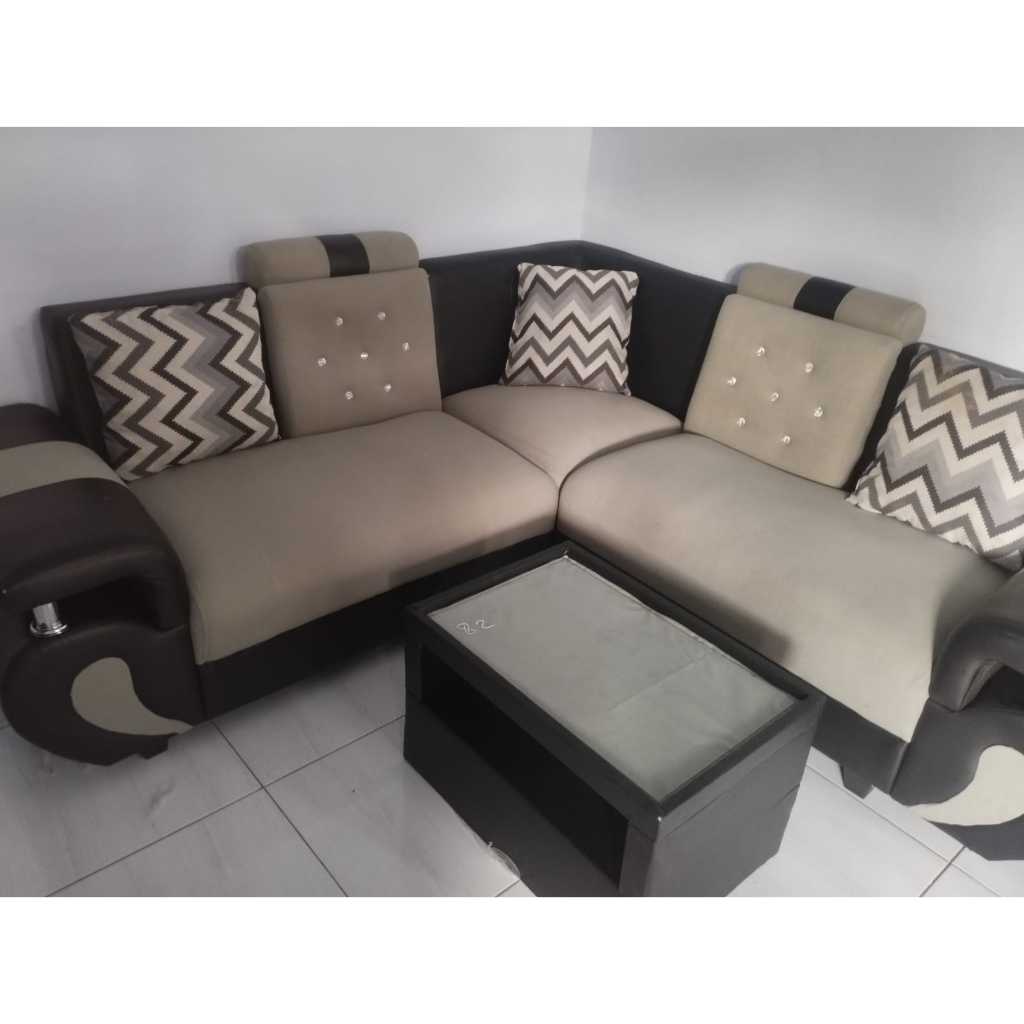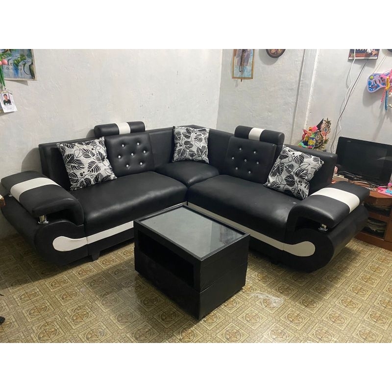 SOFA L SUDUT ANGSA + MEJA KACA BLUDRU TEBAL