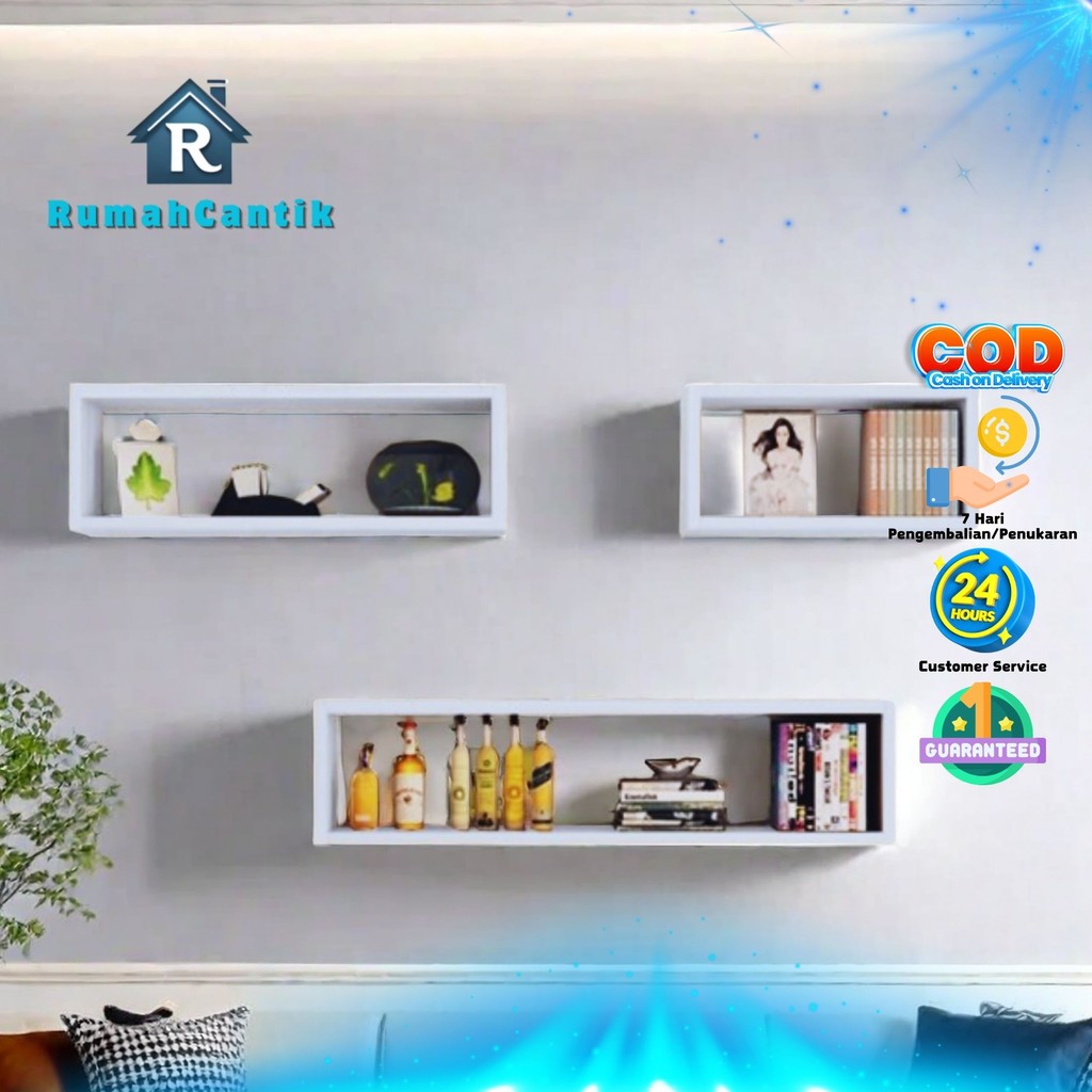 RUMAHCANTIK RAK DINDING GANTUNG PERSEGI PANJANG KABINET MINIMALIS HIASAN DI OFFICE KAMAR MANDI DAPUR