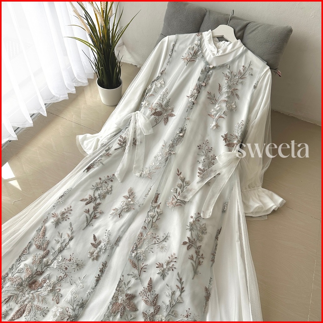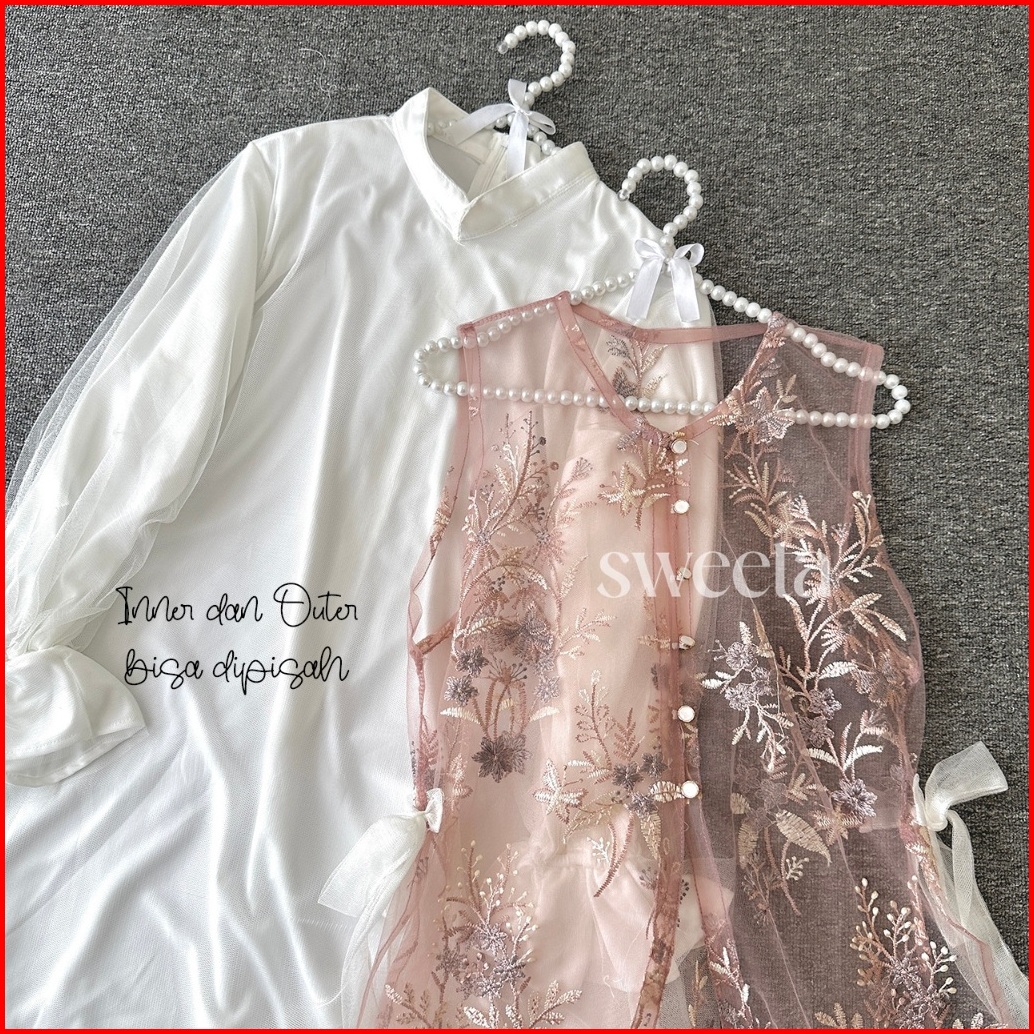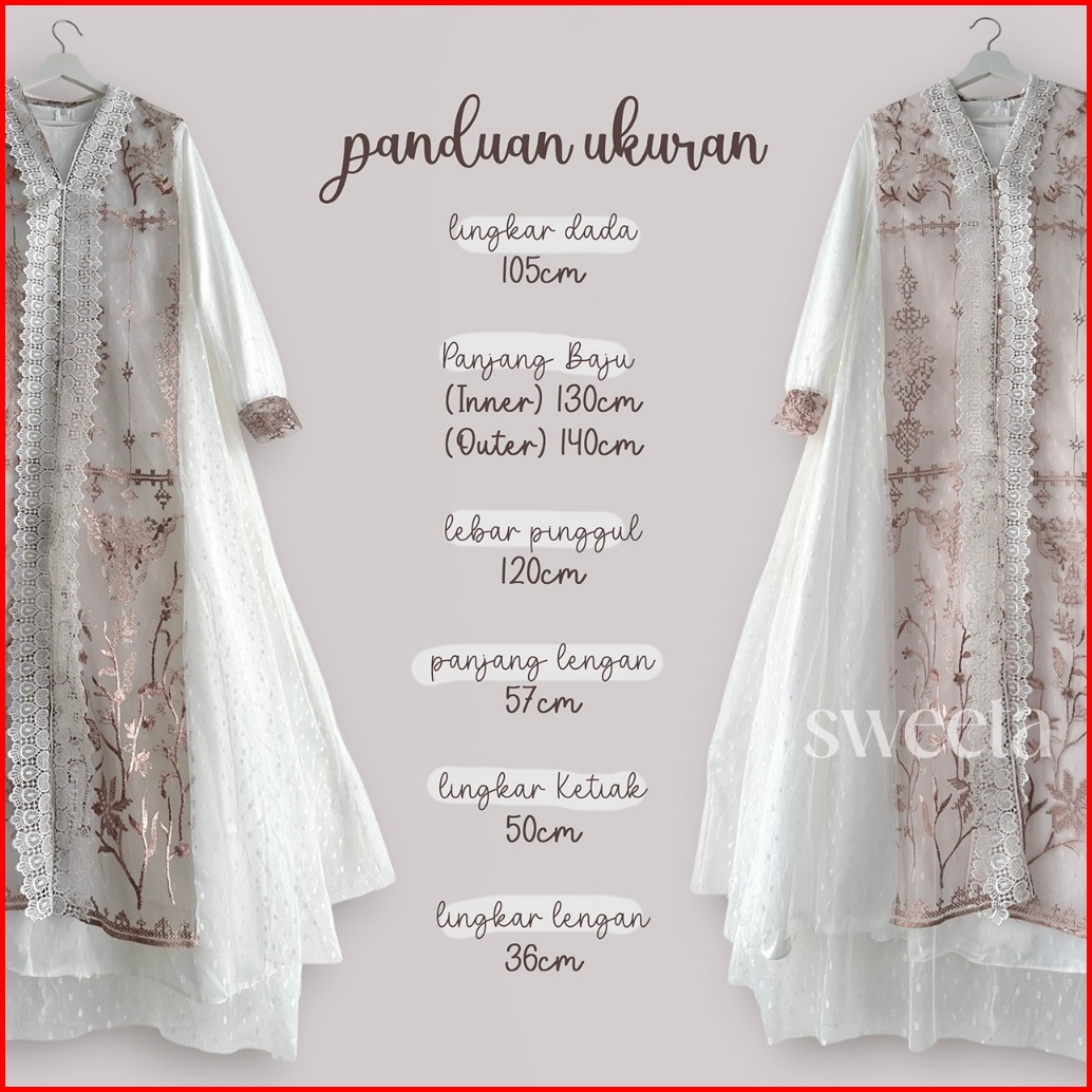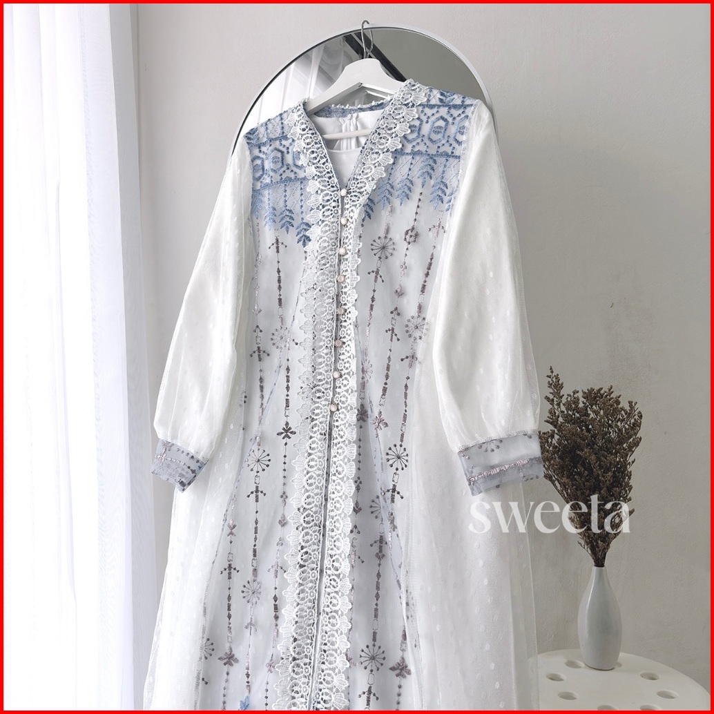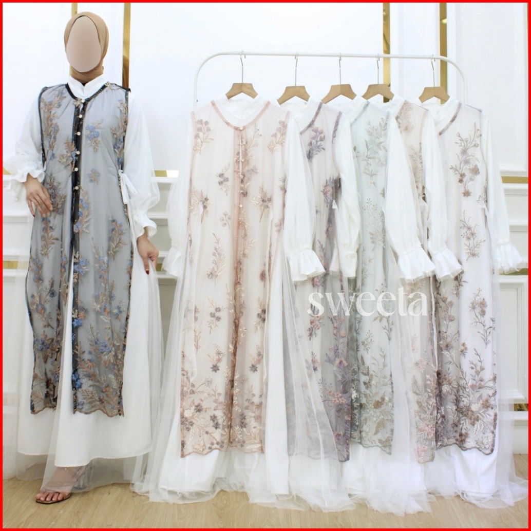 Sweeta Gamis Lace Maxi 2 In 1 Tile Brokat Full Bordir Ld 105 Cm Pakaian Muslim Wanita