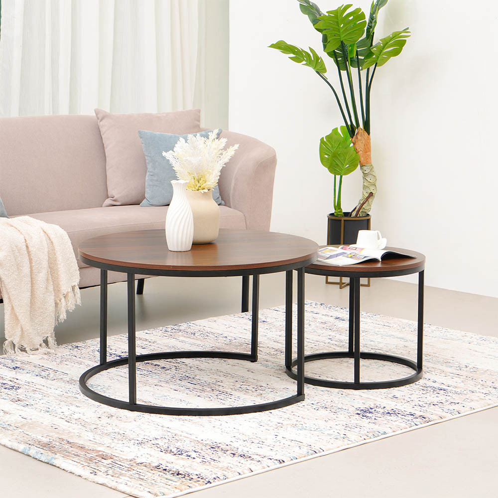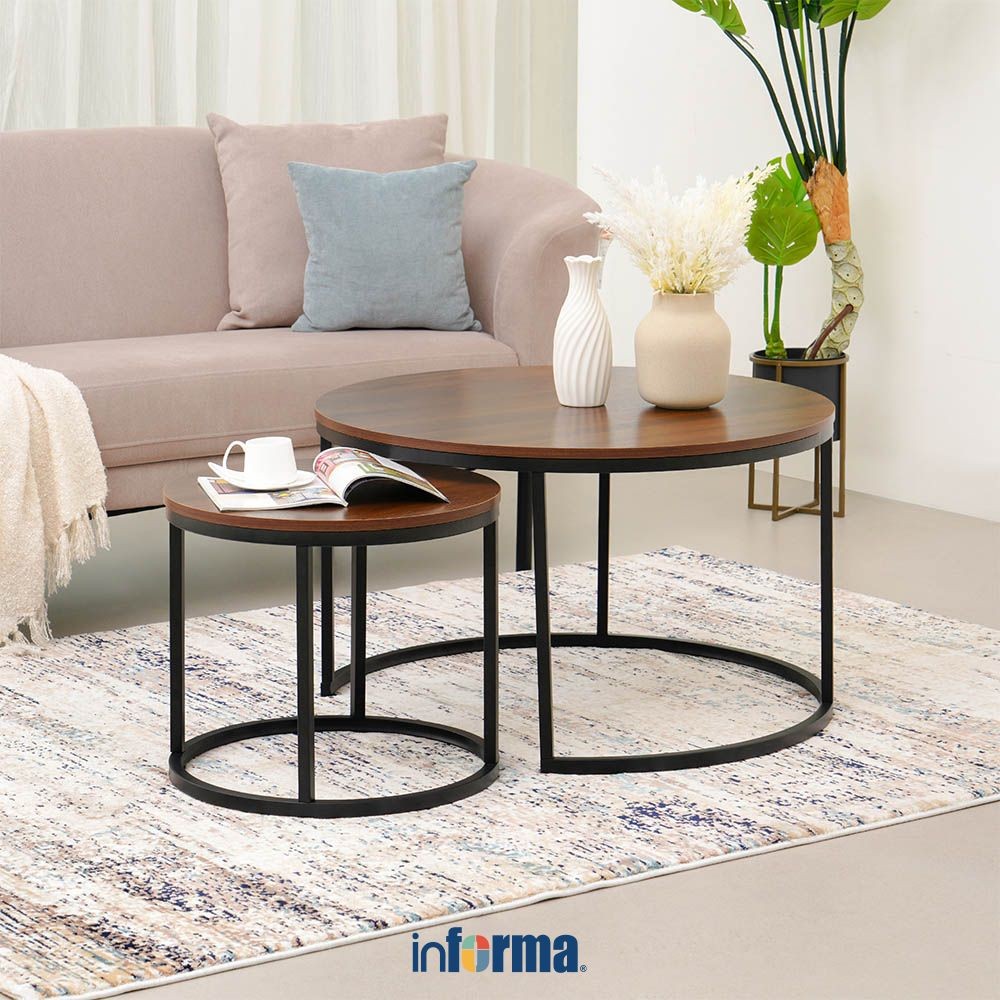 SET 2 PCS JESSE MEJA TAMU & MEJA SISI ROUND SET COFFEE TABLE AND END TABLE MEJA RUANG TAMU SERBAGUNA FURNITURE RUMAH AESTHETIC