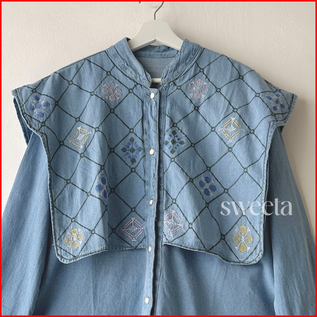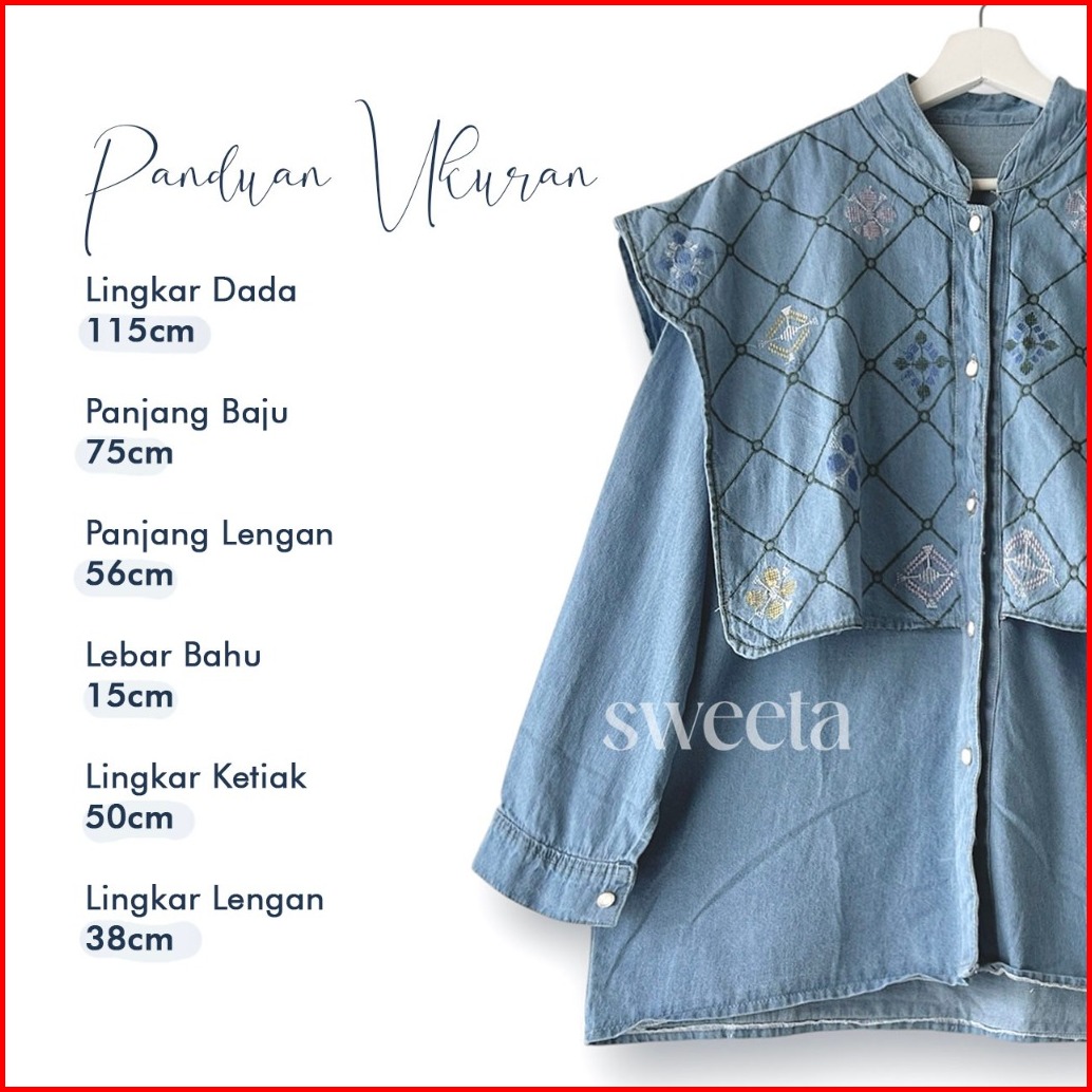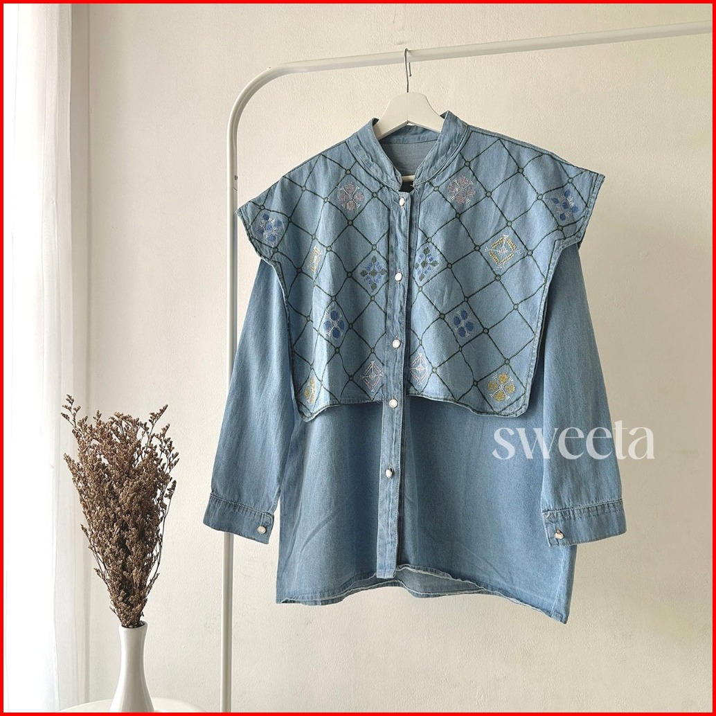 Sweeta Embroidery Blouse Denim Soft Jeans Ld 115 Cm Bordir Atasan Wanita