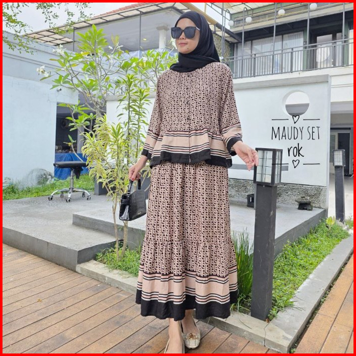 Maudy Set Rok Fashion Muslimah Wanita Rayon Viscose Motif Kekinian Busui Friendly Setelan Panjang