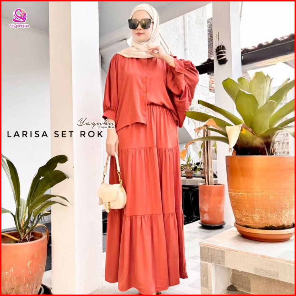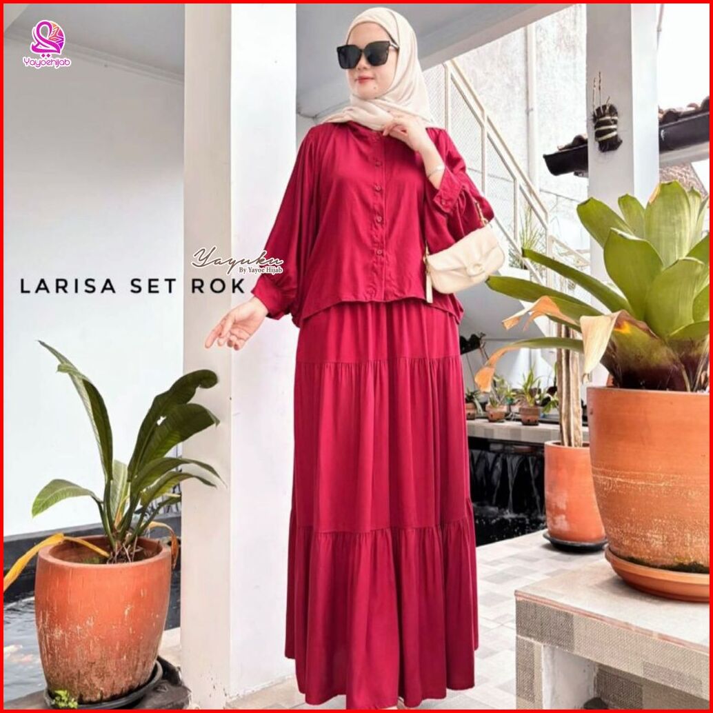 Larisa One Set Bahan Rayon Twill Friendly Terbaru Premium Setelan Rok Jumbo Batwing Wanita Yayuku