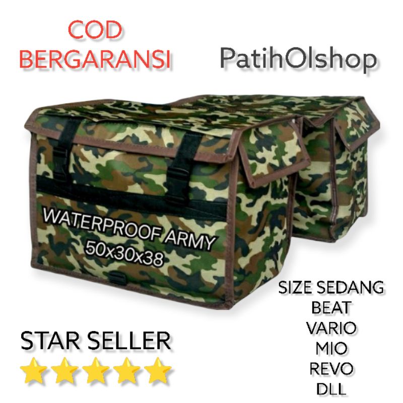 WATERPROOF ARMY, TAS KANDEK MOTOR ANTI AIR, TAS KURIR, TAS OBROK, BAGASI MOTOR, SIZE 50X30X38