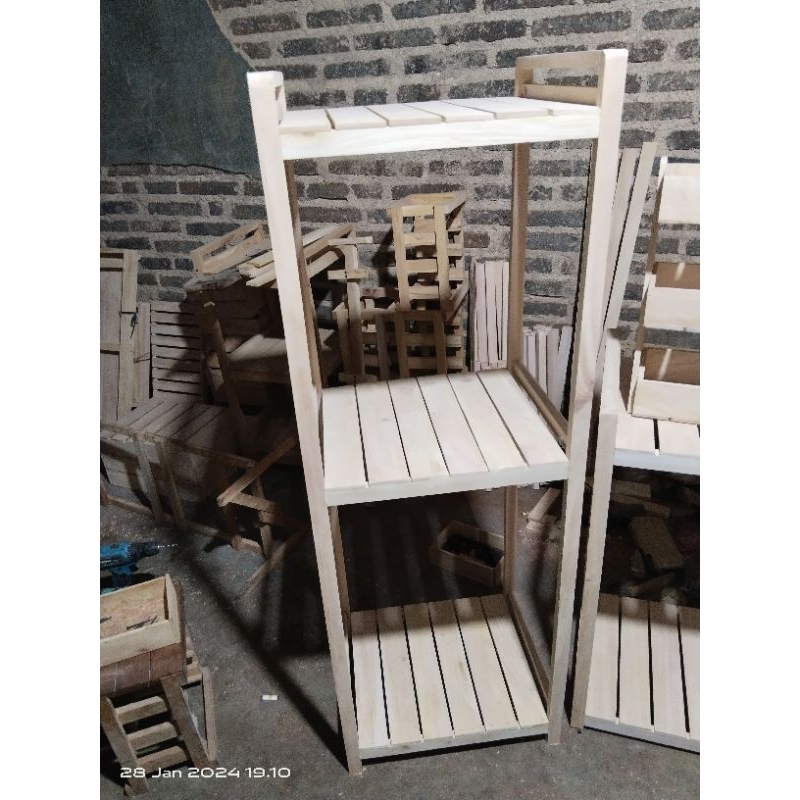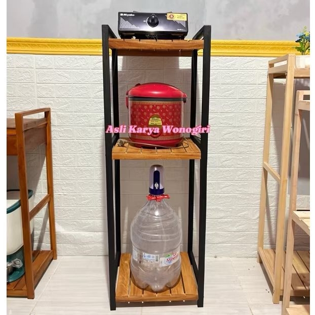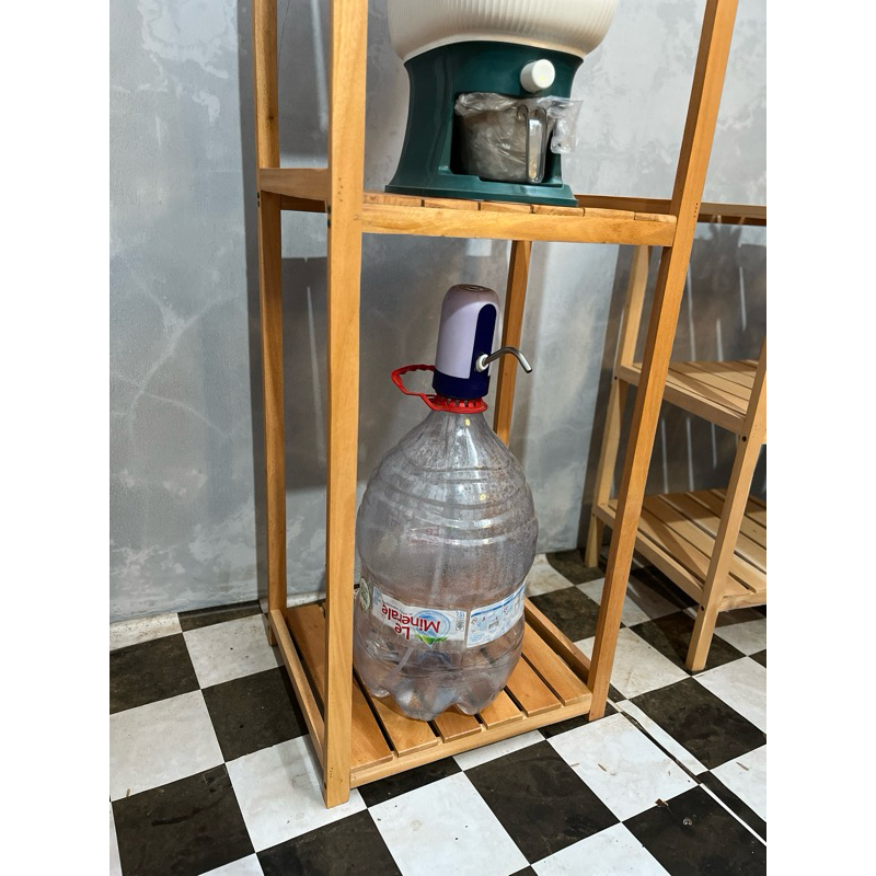 RAK GALON MEJIKOM 3 TINGKAT JUMBO VERNIS RAK DISPENSER KOMBINASI RAK SERBAGUNA TINGGI 125CM