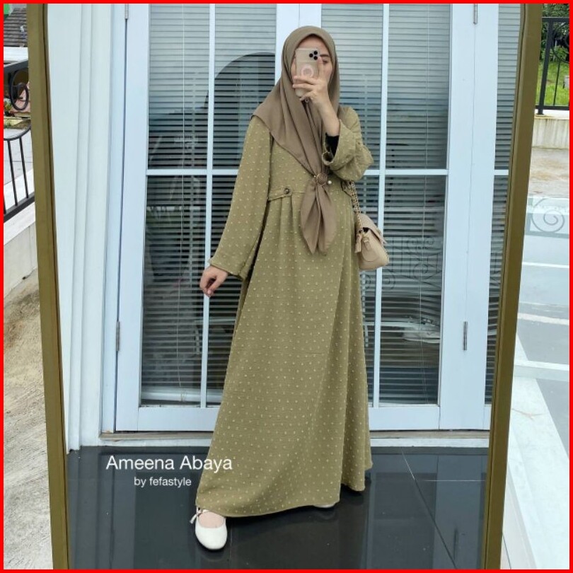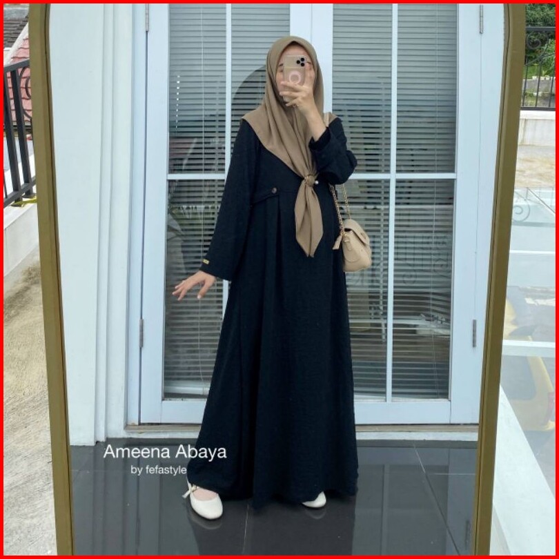 Dress Wanita Muslim Ameena Abaya Bahan Cringkle Uragiri