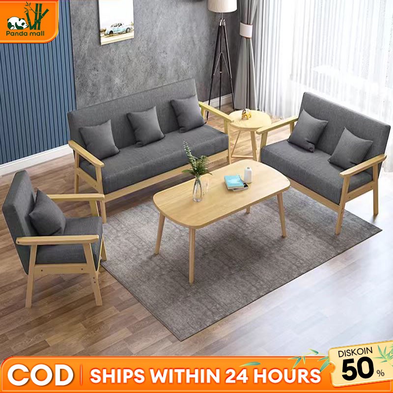 SOFA KAIN SOFA BED 3/2/1 SEATER KAYU SOLID MODERN RUANG TAMU KURSI RUANG SOFA SANTAI SOFA EMPUK