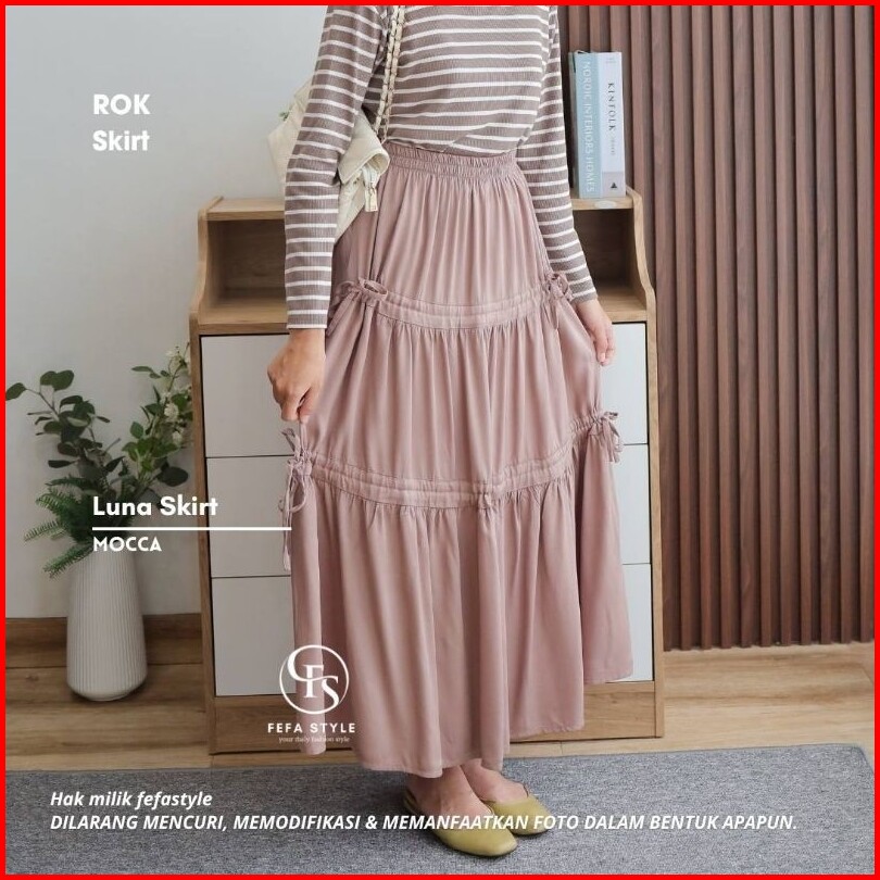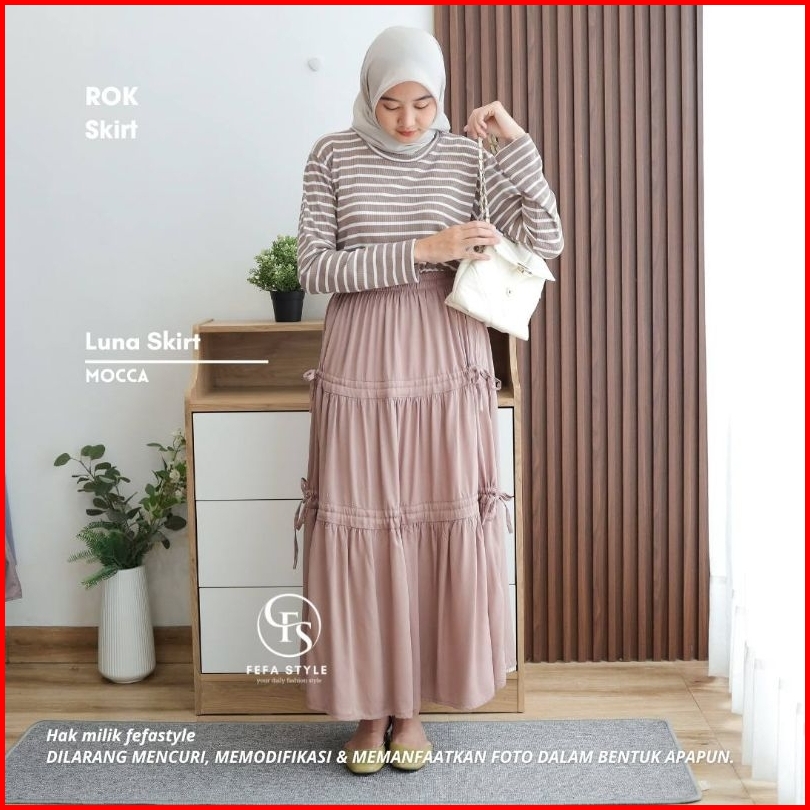 Luna Skirt By Fefastyle- Rok Serut Pita Bahan Adem - Rok Panjang Wanita Korean Look