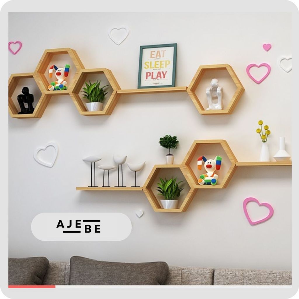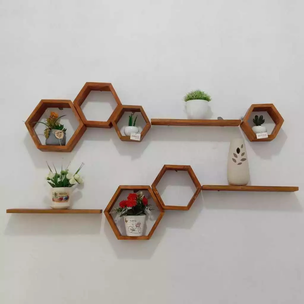 RAK DINDING HEXAGONAL HIASAN DINDING AESTHETIC RAK HEXAGONAL KAYU JATI BELANDA PAJANGAN HIASAN DINDING GANTUNG