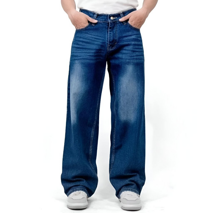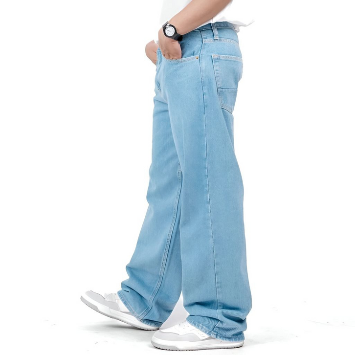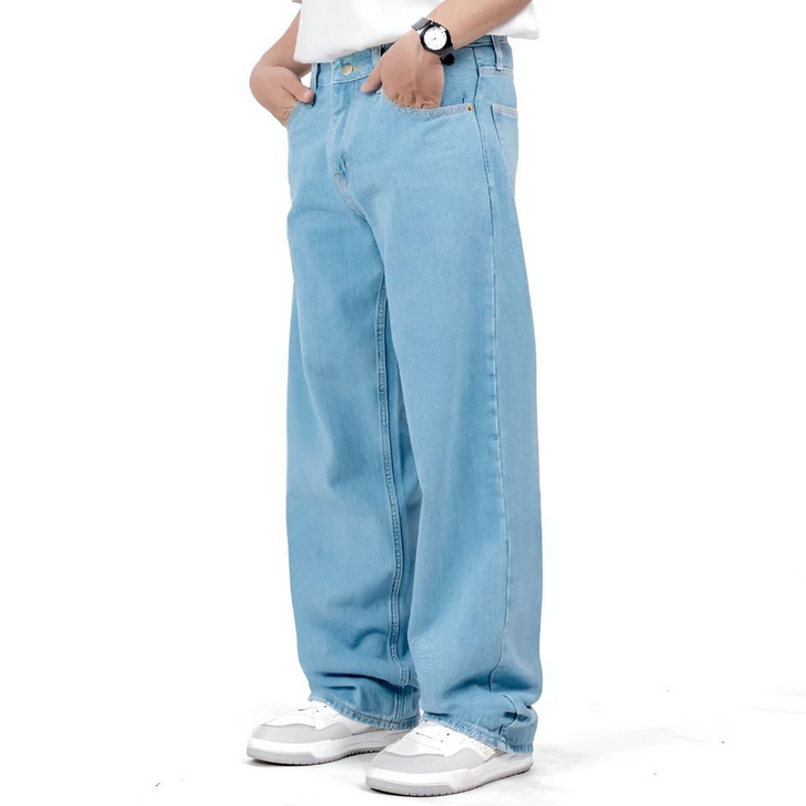 Celana Jeans Panjang Pria Loose Pants Straight Oversize Korean Style Loose Blue Standard Reguler Skena