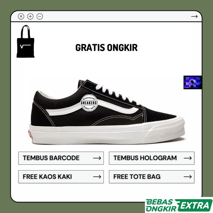 Sepatu Sneakers Old Skool OG Hitam Putih Kasual OldSkool OG Black White Casual