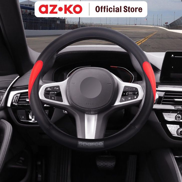 AZKO Sparco Set 3 Pcs Sarung Stir Mobil & Bantalan Bahu - Merah Steer Cover Aksesoris Interior Mobil Case Setir Dekoras