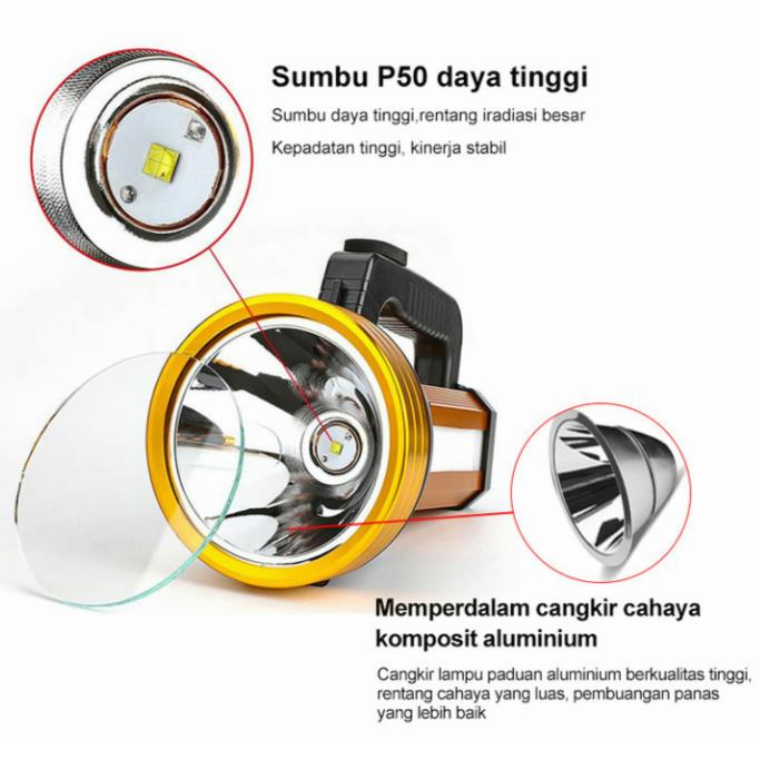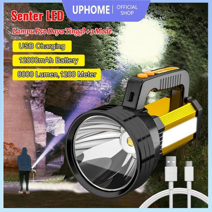 UPHOME Lampu Senter LED Super Terang Jarak Jauh 3 Mode Senter Camping Jumbo Multifungsi 48W IPX6