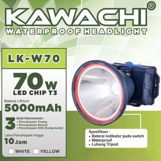 SENTER KEPALA LED KAWACHI LK-W70 70WATT - BATERAI 5000MAH