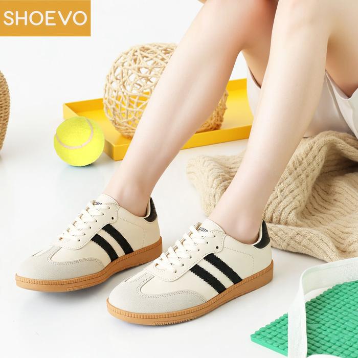 SHOEVO Sam-ba Sepatu Sneakers Wanita Sepatu Kerja Wanita Fashion Bahan Tinggi warna hitam Cream ST102 - Black 36