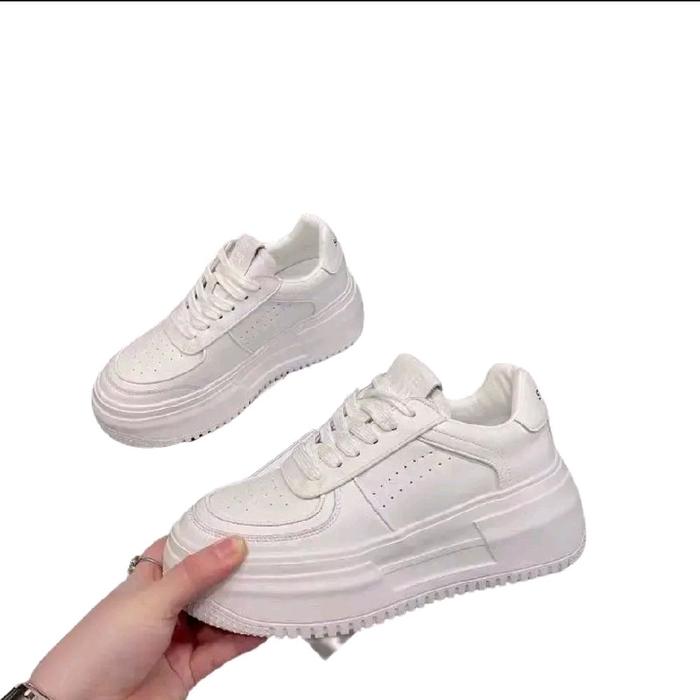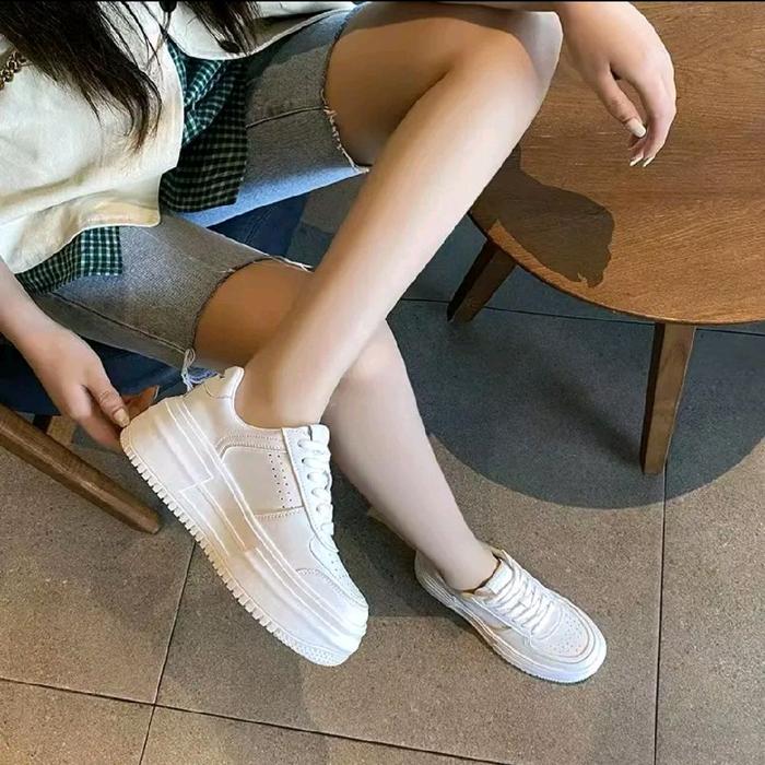 Havana Sepatu Sneakers Tali Simpel Kulit Wanita Korea Canvas Sports Shoes Casual Kasual - white 36