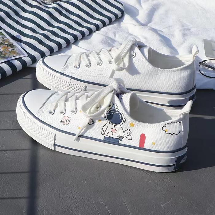 SETU Sepatu Sneakers Wanita Bahan Canvas OOTD Remaja Cewek Korea 074 - White 37