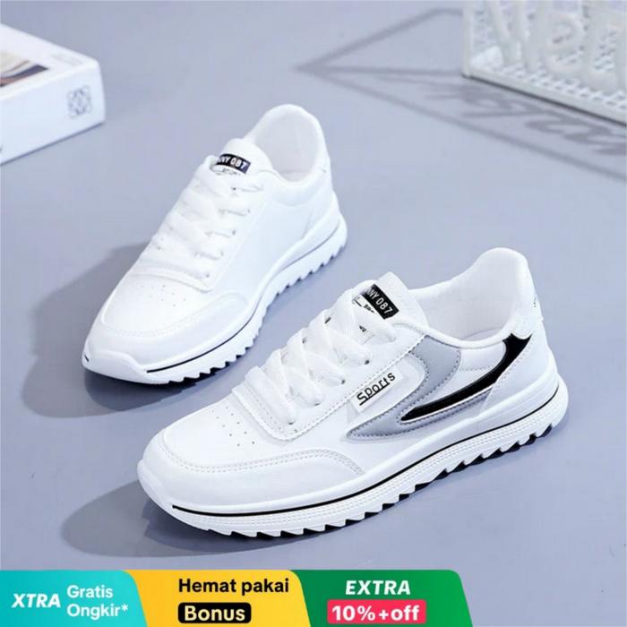 SR Sepatu Sneakers SUNNY Sepatu Wanita Casual Sport Full White Round Toe - Hitam 37