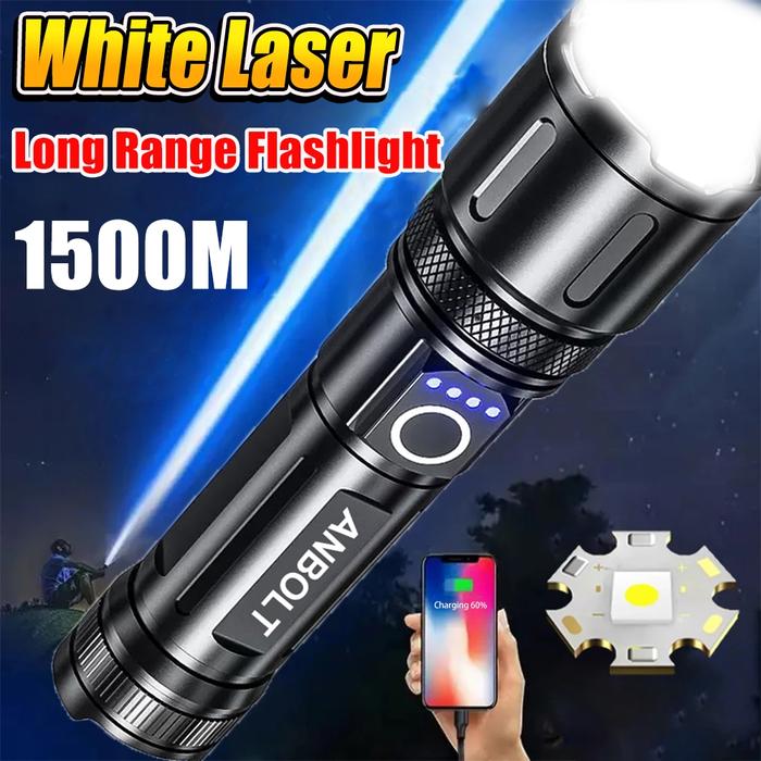 Anbolt Senter LED ultra-terang M26, senter LED tahan air jarak jauh, 90,000 lumen, senter zoom USB C