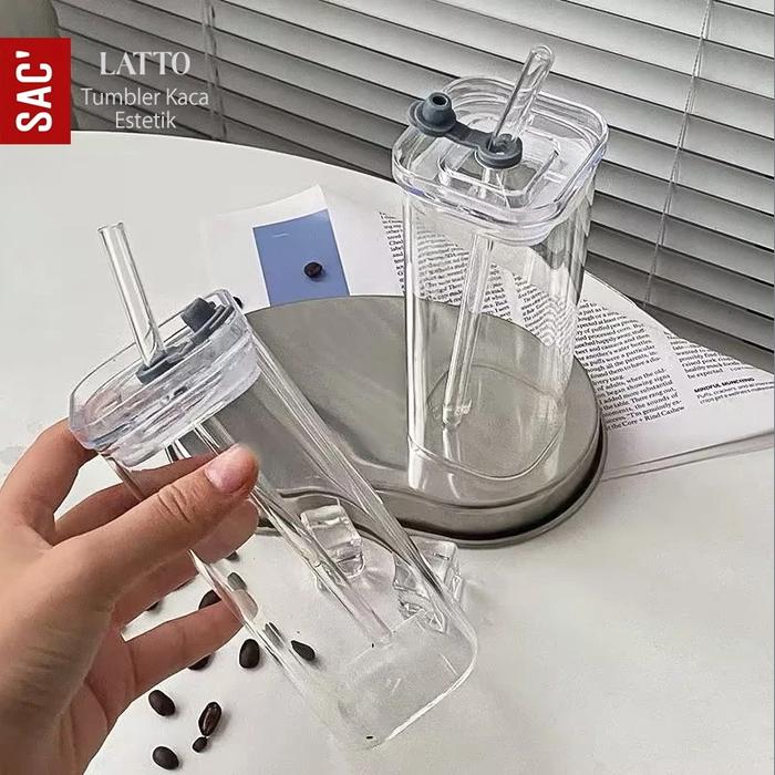 LATTO Gelas Kaca Estetik Minum Kopi Susu Jus Aesthetic Glass Coffee Milk Bening + Sedotan Kaca - LATTO