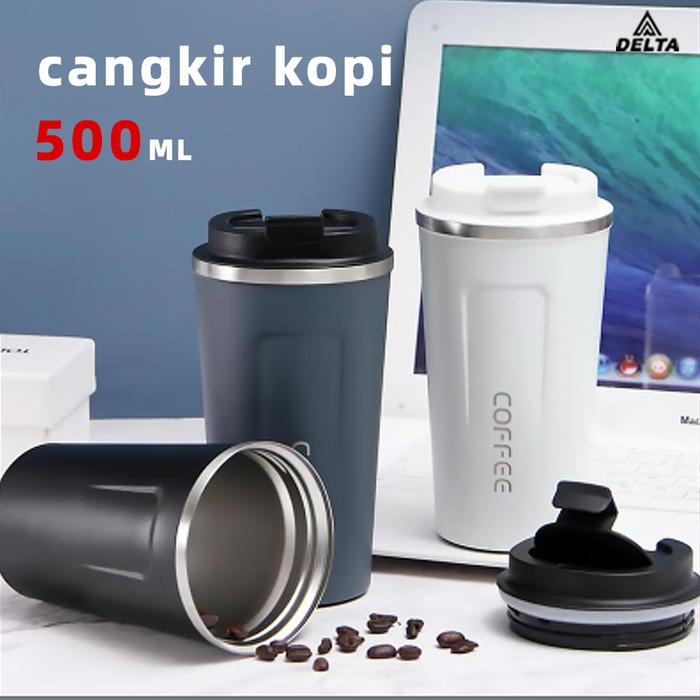 Kopi 500 ml Stainless Steel Gelas Vacum Tahan Panas 12 JAM Mug Coffee Botol Vacuum Plastik Termos Pink - Merah Jambu