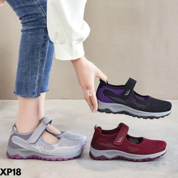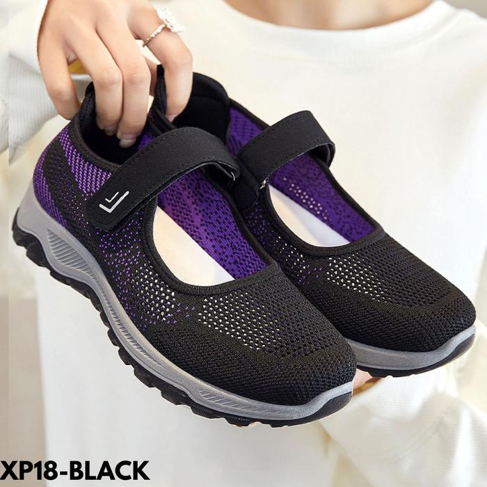 SEPATU SNEAKERS KEREN WANITA COMFY WEAR WARNA BASIC BAHAN MESH BREATHABLE P18 - BLACK 36