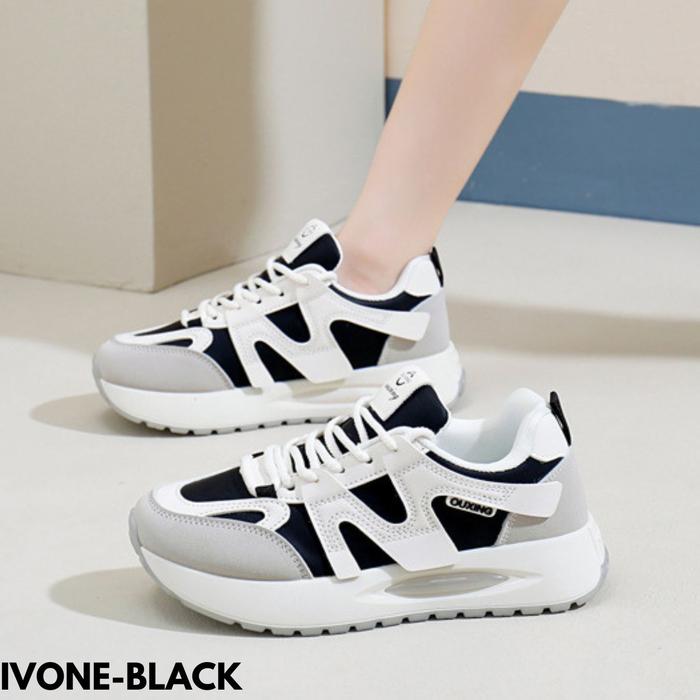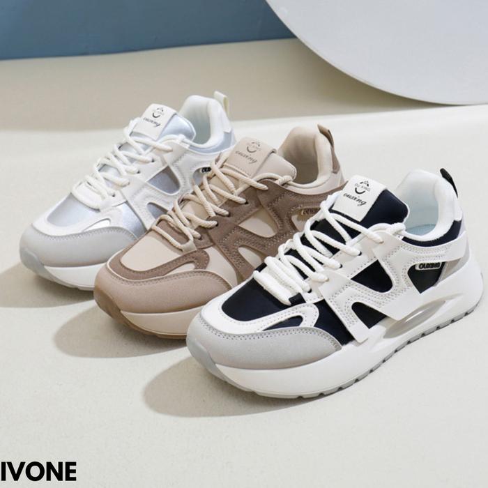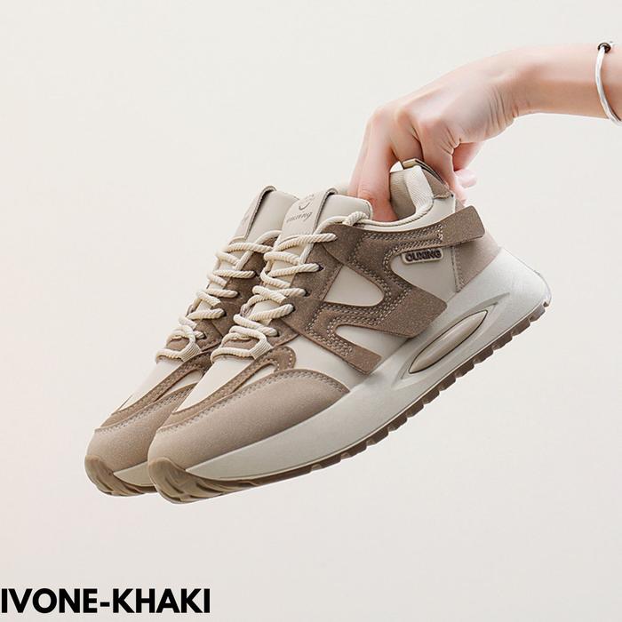 Sepatu Sneakers Wanita Model Kekinian Trend Stylis Moderen Cantik Keren Bahan Pu Berkualitas Nyaman Ivone - khaki 36