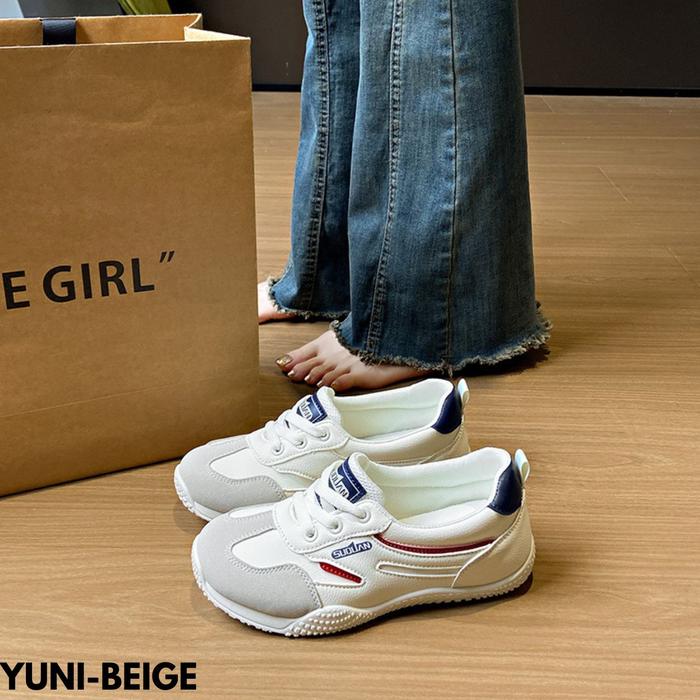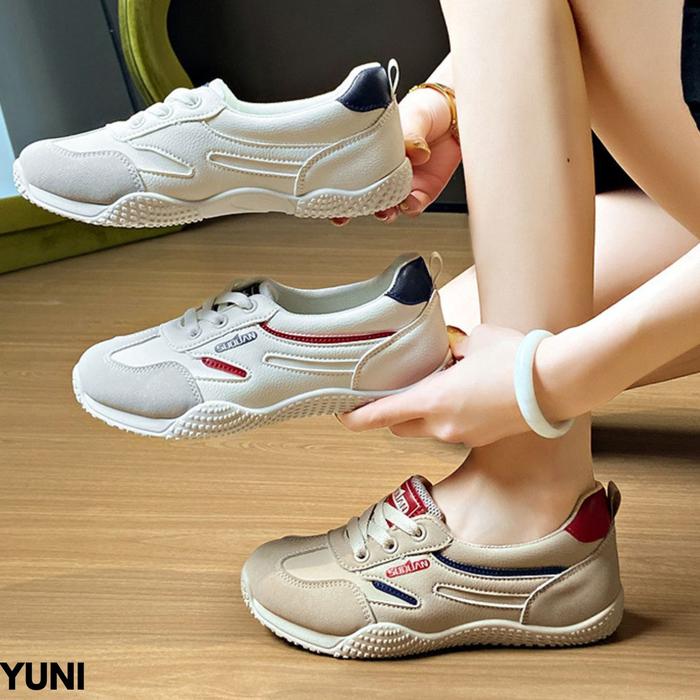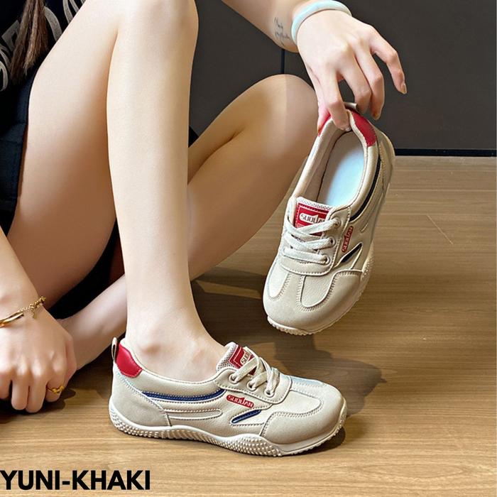 FINDME 36-40 Sepatu Sneakers Wanita Klasik Modis Nyaman Dipakai Kerja Casual Harian Bahan Pu Yuni - Khaki 36