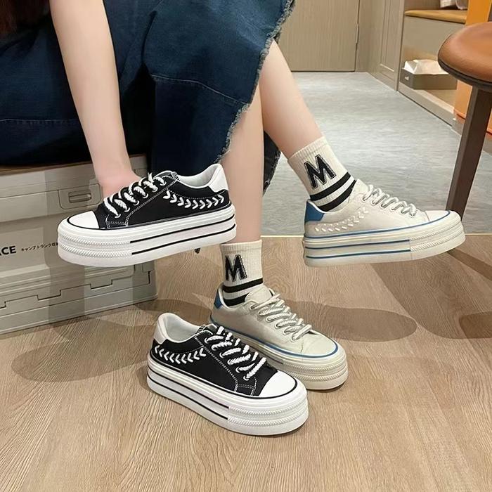 KOII sepatu sneakers putih wanita perempuan olahraga kekinian korea sekolah sport cewek kets - beige 36
