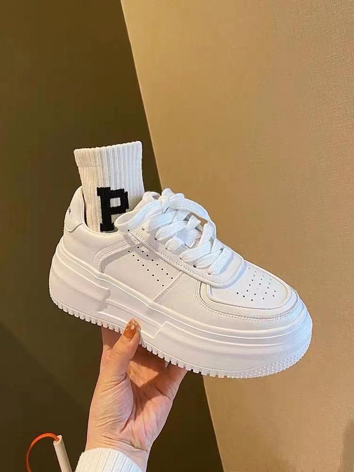 Havana Sepatu Sneakers Tali Simpel Kulit Wanita Korea Canvas Sports Shoes Casual Kasual - white 36