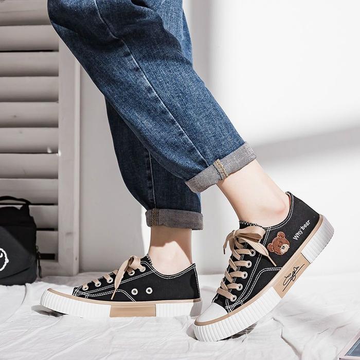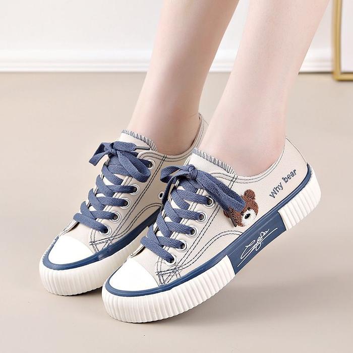 Sepatu Sneakers Canvas Wanita "CLAIRE" Why Bear SW-217 Karet Shoes Casual Sport Cewek Olahraga Kasual - Krem / Cream 40