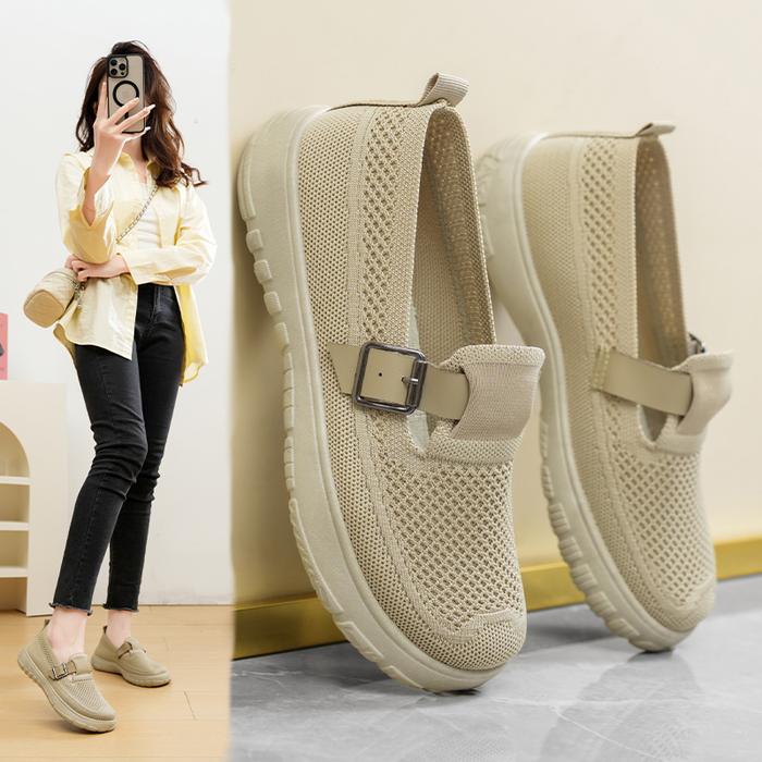 Casual Slip On Sneakers Shoes Sepatu Wanita Sepatu Birken Sneakers Canvas Wanita Modis - Beige 36