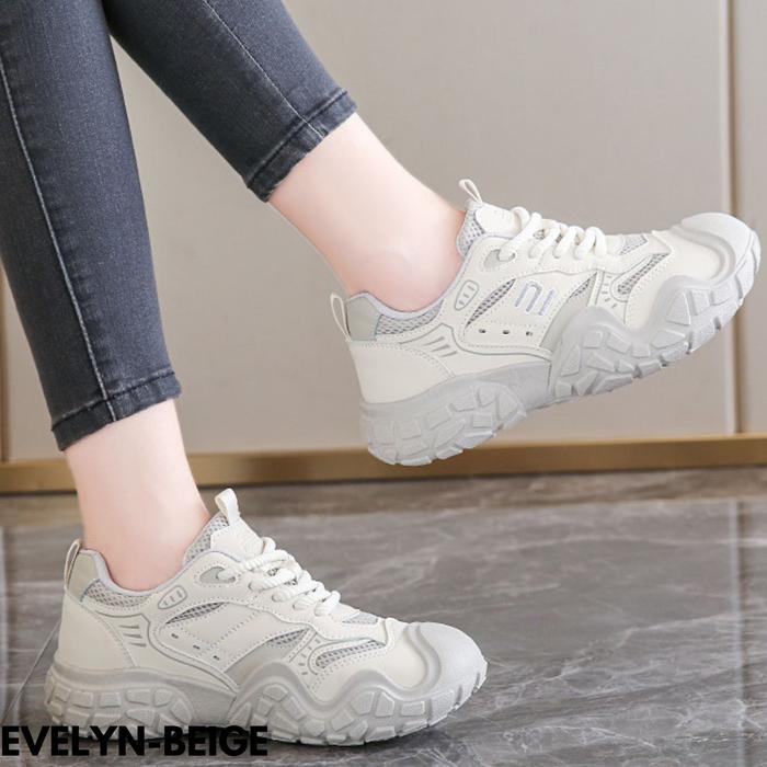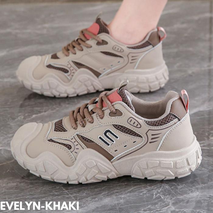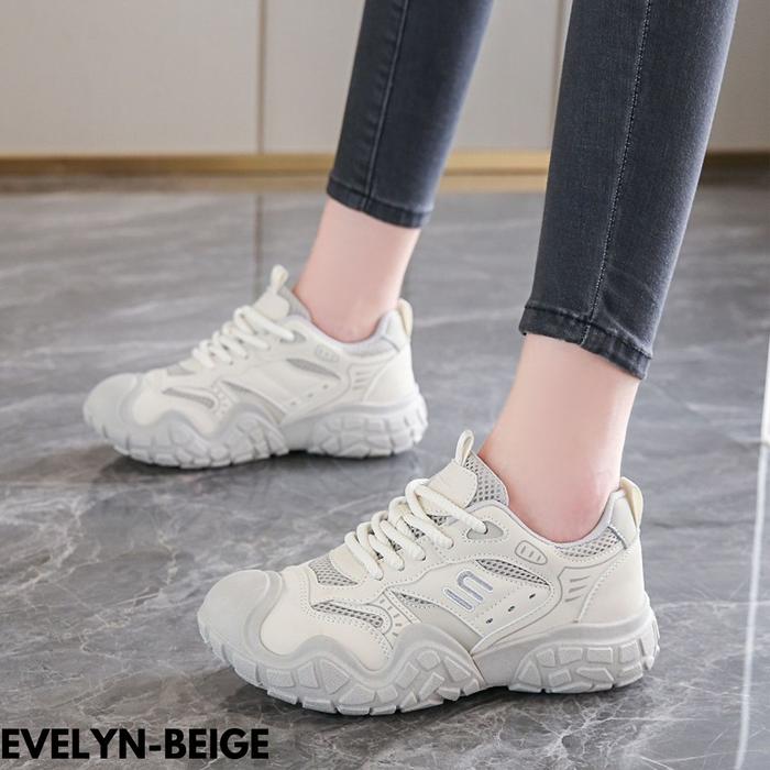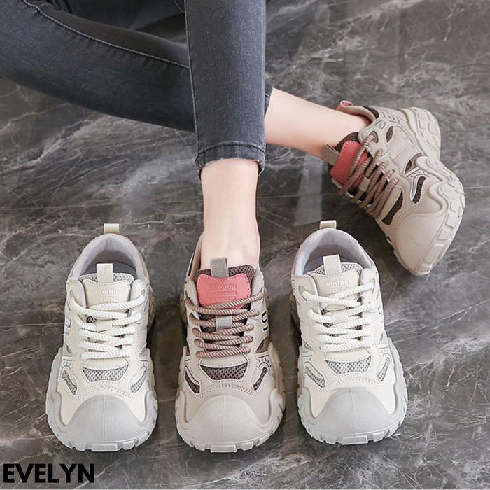 Sepatu Sneakers Wanita Anti Slip Gaya Keren Casual Bahan Pu Bagus Nyaman Dipakai Travel Evelyn - beige 36