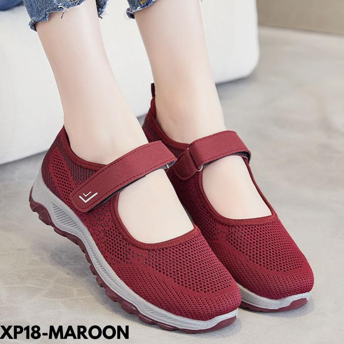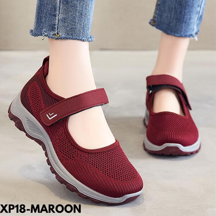 Sepatu Wanita Sneakers Sporty Style Praktis Kasual Strap Nyaman Kekinian Simple Bahan Mesh Breathable P18 - black 36