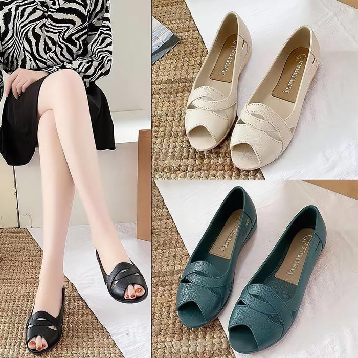 GRX SPORT BATAMTOP TG1726 Sepatu FlatShoes Wanita Import Sepatu Kerja Slip On Wanita Model Silang - CREAM SILANG ARAH 36